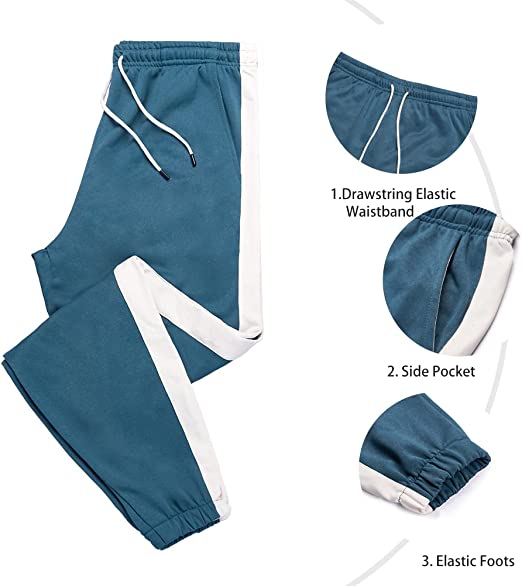 - [Jogger Sweatpants]: Jogger pants, elastic drawstring waist, 2 side slant pockets, side contrast color stripe decoration, ankle banded pants.